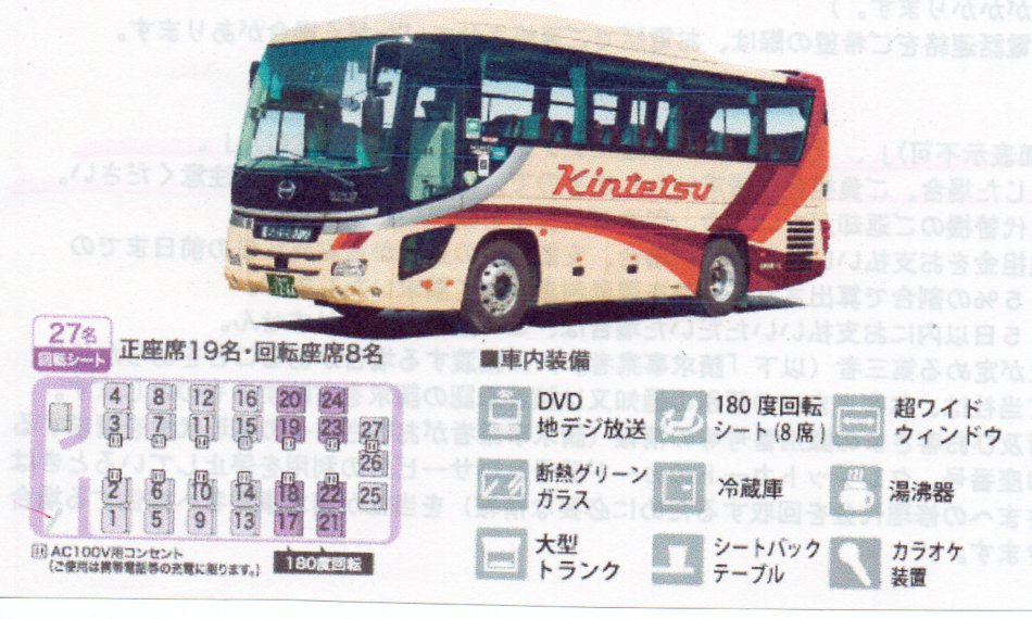 *乗車定員:11列バス/44名・12列バス/48名・トイレ付ワイドバス/36名・・・ *座席の入れ替えはありません・・・ *参加者奇数の場合・相席あり・・バス座席確保3,000円/日にて、ご用意可 |