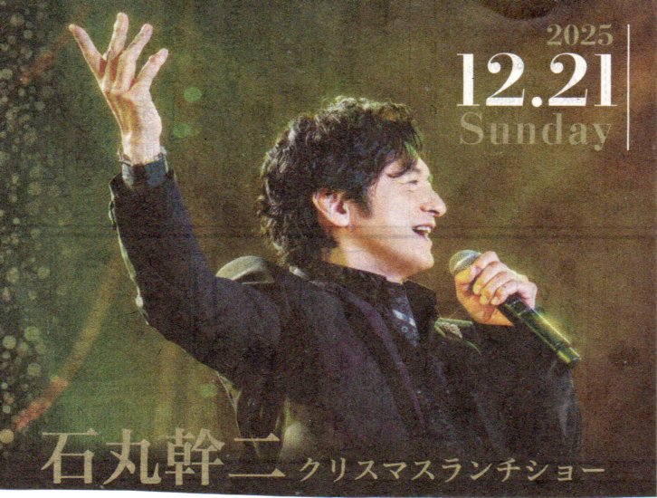 期日:12月21日(日) 会場:岐阜グランドホテル 開演:@食事12:30・ショー13:45〜・A食事17:00・ショー18:15〜 料金:ss席45,000円・S席39,000円・コース料理・フリードリンク付 一般発売日:9/27発売開始・・・・・ |