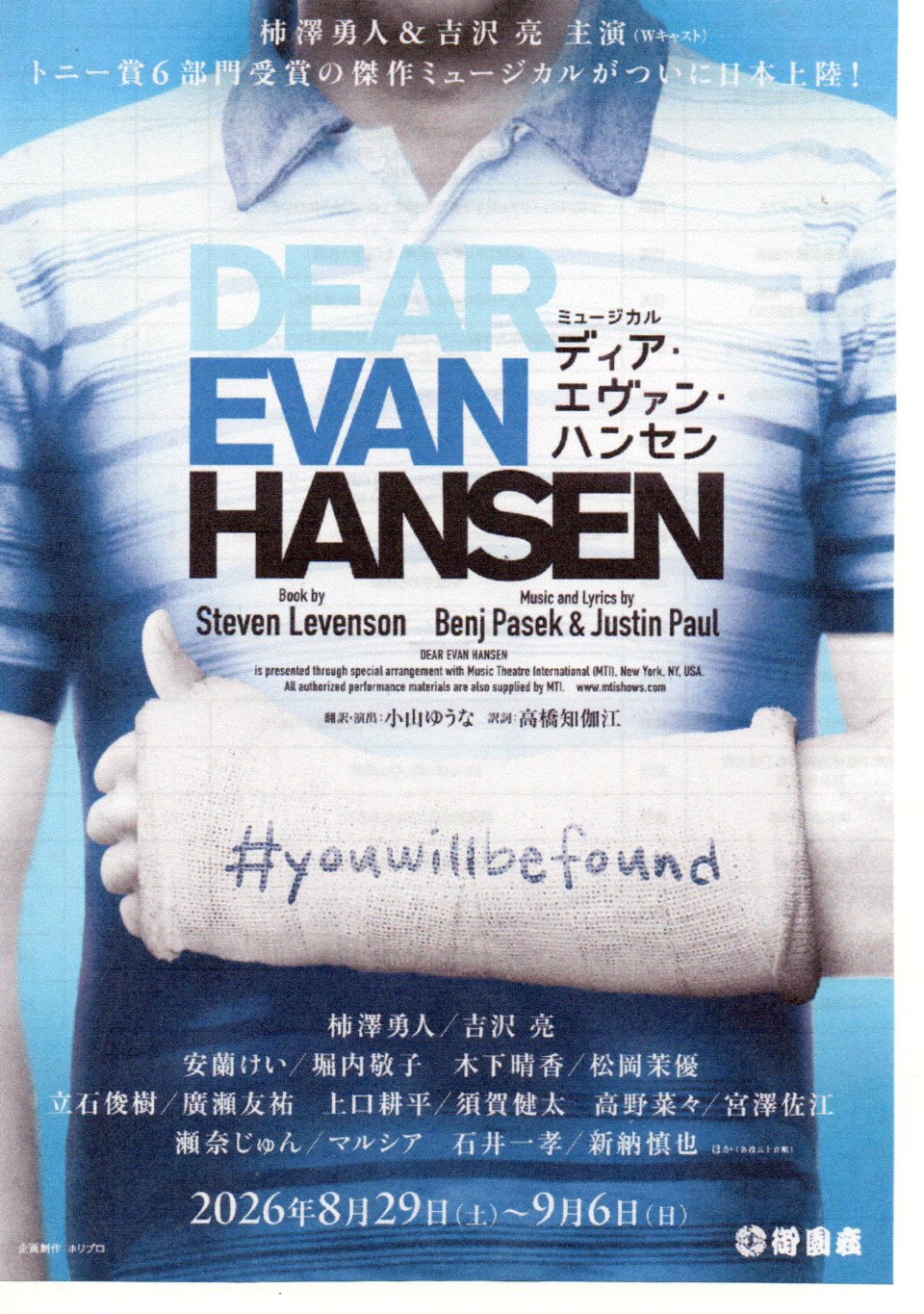 | □ミュージカル「ディア エヴァン ハンセン」 期日:8月29日(土)〜9/6日(日) 出演:Wキャスト:柿澤勇人/吉沢亮 開演:12:00→8/29-31.9/2-6・17:00→8/31.9/3.5 料金:S席14,500円・A席11,000円・B席8,500円 発売日:5/24(日)発売開始・事前受付・団体受付中・・・ |